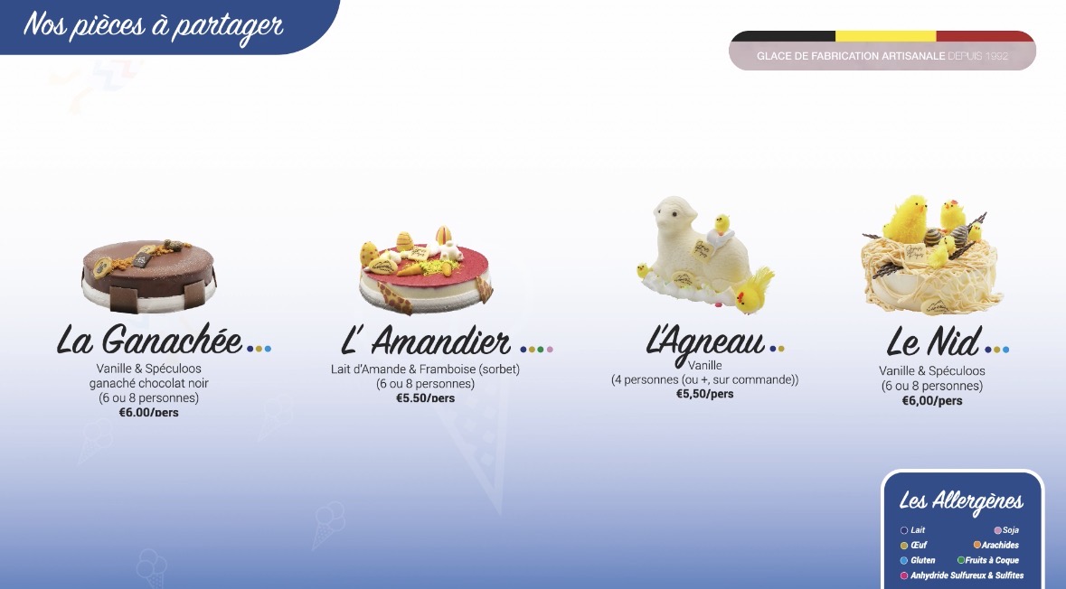 Vous souhaitez profiter d'une glace artisanale dans notre salon de dégustation ?Découvrir les horaires d'ouvertureNos produitsNos glaciers ambulantsPour vos événements
